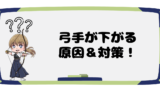 - 引き分け時には二の腕の下の筋肉を使うと肩が下りやすくなります。